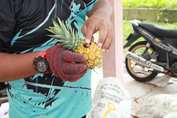 Para peraih tidak mahu mengambil hasil buah nanas yang kurang cantik walaupun hanya terdapat sedikit sahaja kerosakan pada buah.